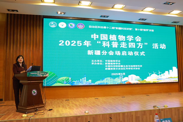 ????9月21日,由中国植物学会指导、新疆植物学会、中国科学院新疆生态与地理研究所、新疆科协主办的中国植物学会“科普走四方”新疆分会场系列活动圆满举行。中国植物学会副理事长康振生院士、新疆生地所党委书记张向军出席会议并致辞,新疆科协副主席姑丽娜尔·吾布力出席会议,新疆生地所副所长、新疆植物学会副理事长兼秘书长张道远研究员主持会议。